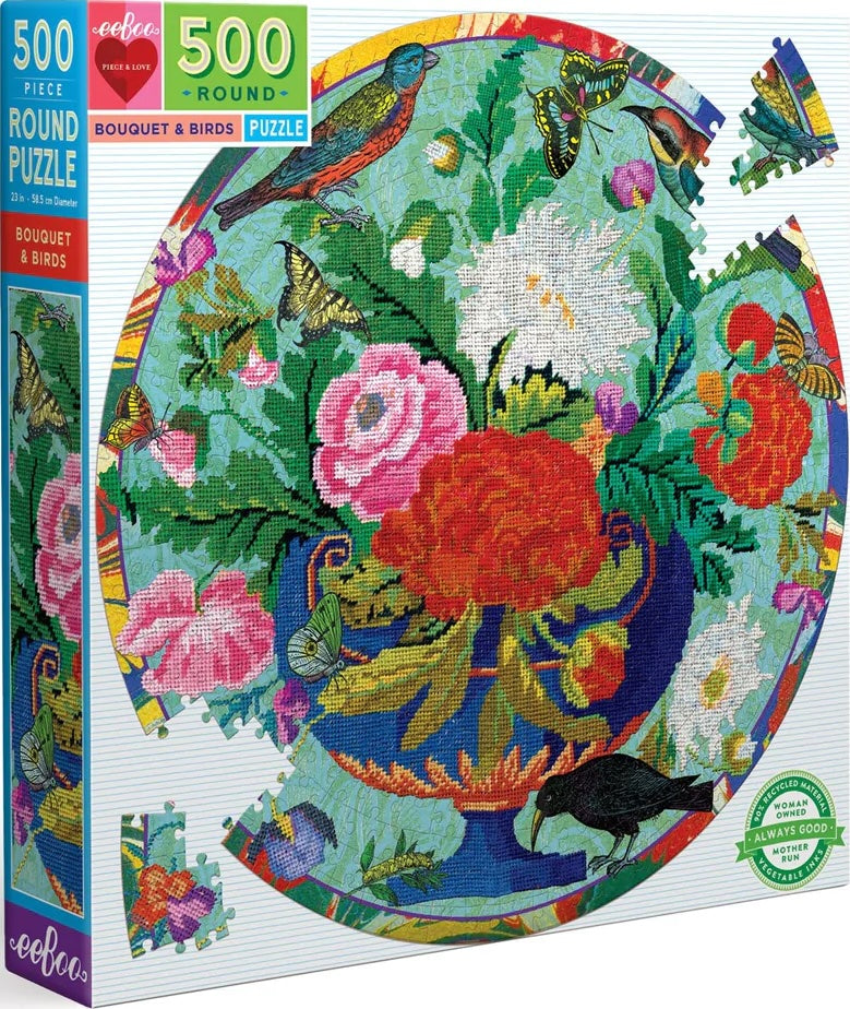 Bouquet & Birds - Fumiha Tanaka | Eeboo | 500 Pieces | Round Jigsaw Puzzle