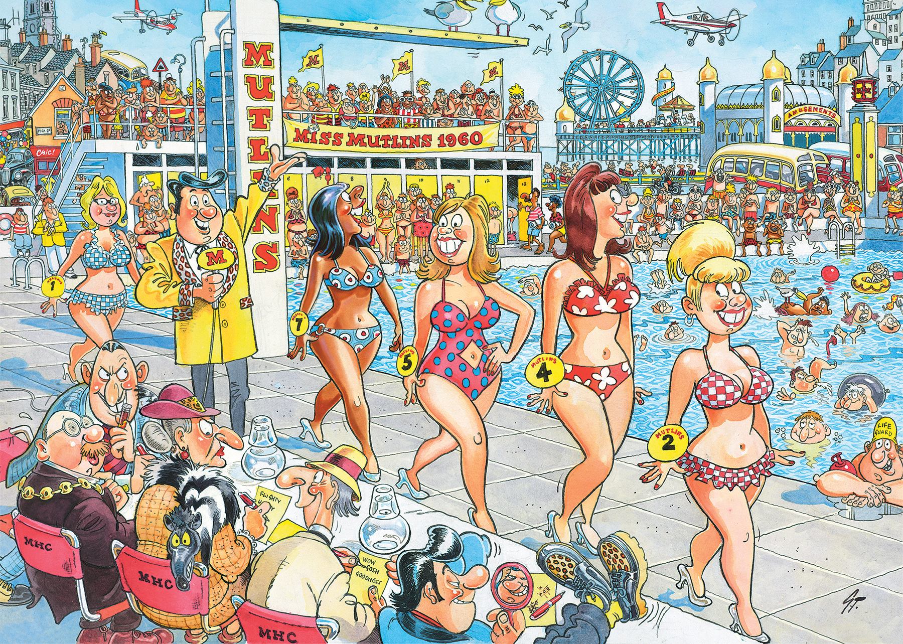 The holidaymakers are enjoying the ‘Miss Mutlins 1960’ beauty contest beside the swimming pool on this lovely summer’s day. The ‘Super Models’ are parading their assets in front of the crowd and loving all the attention. But what will these holidaymakers be watching if it were today?