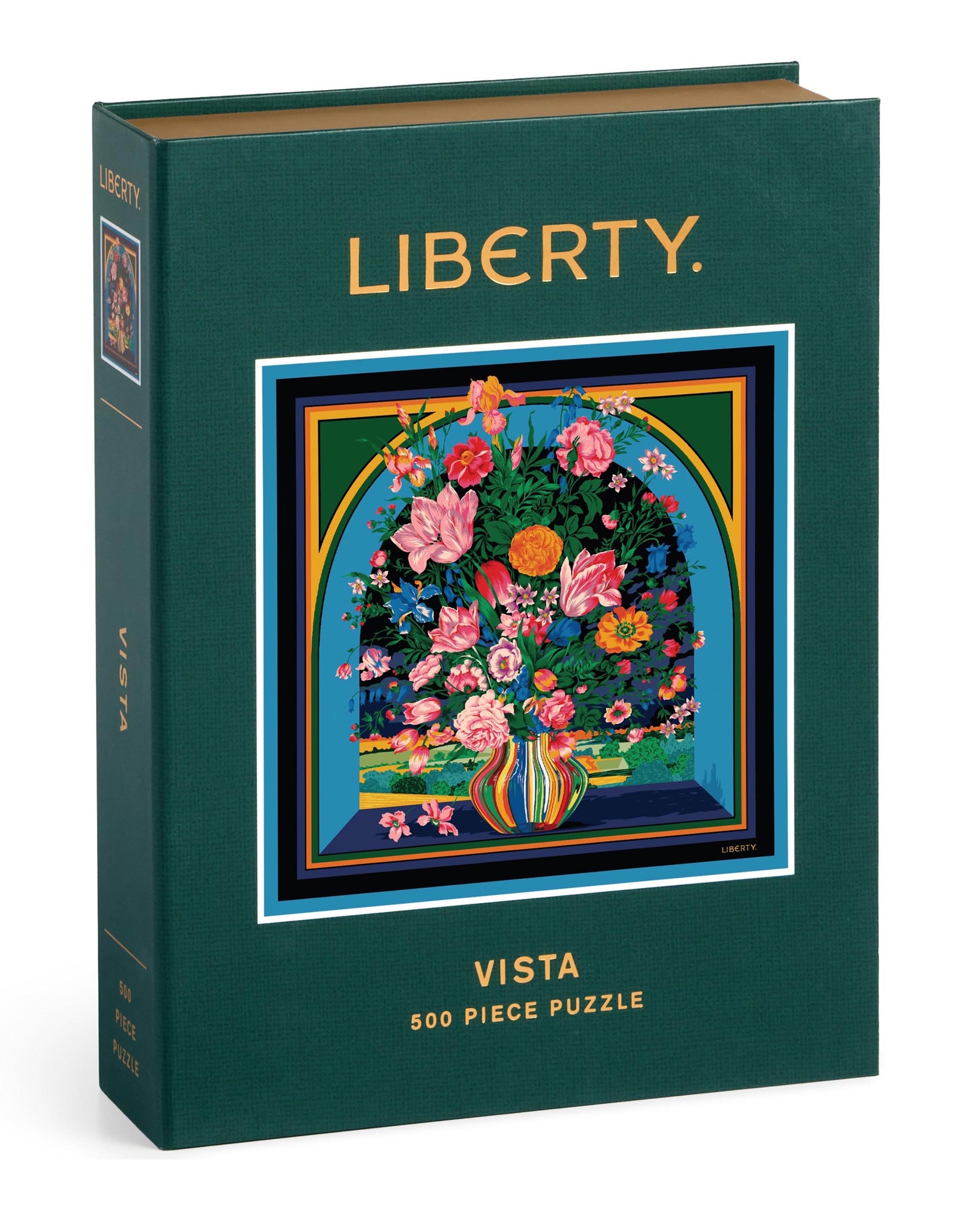 The Liberty Vista 500 Piece Book Puzzle features Liberty’s Vista print, a hand painted scene depicting a view through a window with a floral bouquet at the center. This book shaped keepsake box with magnetic closure features Liberty’s Heirloom print, a dense and rich botanical illustration reworked from a Liberty archive painting, full of chrysanthemums, marguerites, tulips and daffodils.