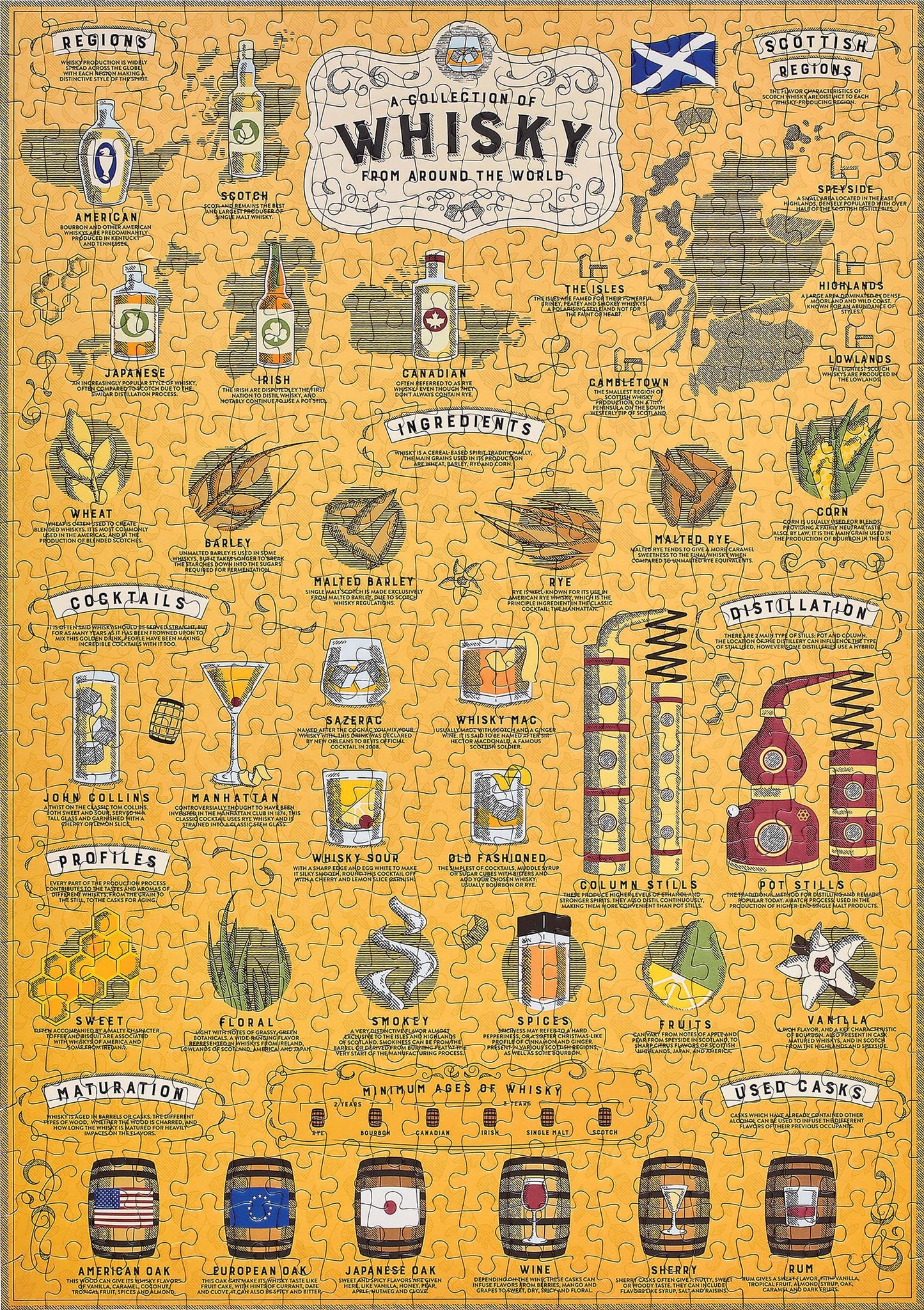Whisky lovers raise a glass to this Whisky Lovers Jigsaw Puzzle from Ridley’s Games! Toast to the classic Scottish Gaelic ‘water of life’ tipple by completing this 500 piece puzzle. It’s the perfect gift for any whisky lover, featuring a collection of whisky regions, flavours and cocktails.
